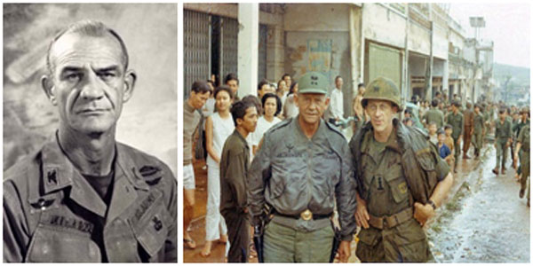 [Hình bên trái: Đại tá William H. Miller, Cố vấn Bộ Tư lệnh Sư đoàn 5 Bộ binh VNCH tại mặt trận An Lộc. Ông có mặt bên cạnh Chuẩn tướng Lê Văn Hưng từ ngày đầu tiên đến cuối cùng của trận chiến. Ông trực tiếp điều khiển B 52 từ Thái Lan rải bom trải thảm xung quanh An Lộc, các phi cơ AC-130 Spectres cũng do vị sĩ quan Hoa Kỳ đã từng tham dự Đệ nhị Thế chiến, Chiến tranh Hàn quốc và ba lần tham chiến tại Việt Nam hướng dẫn. Ông sinh ngày 9/8/1924 và qua đời ngày 28/2/2004. Hình bên phải: Thiếu Tướng James F. Hollingsworth thị sát An Lộc, tháng 10 năm 1972. Bên cạnh ông là một Đại tá Cố vấn Mỹ tại Sư đoàn 5 Bộ binh, không biết tên.] (Hình ảnh: Admin ĐN)