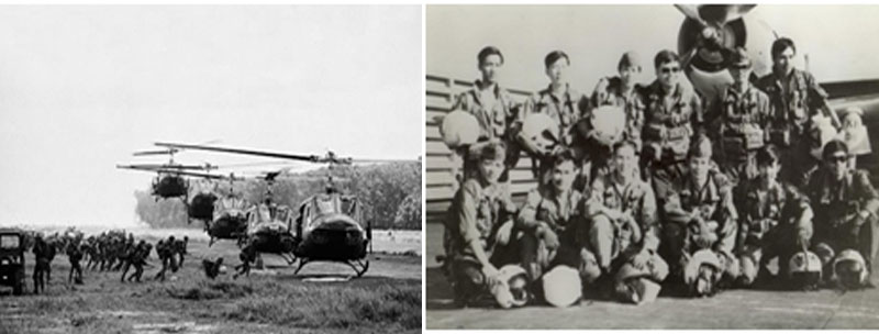 [Hình bên trái: Phi cơ Trực thăng đổ quân.. Hình bên phải: Phi đoàn 518, Sư đoàn 3 Không quân, Biên Hoà] (Hình ảnh: KQ/VNCH và Chiến trường An Lộc