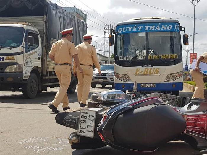 Sáng cùng ngày, tại đường Hồ Chí Minh (thuộc phường Khánh Xuân, TP Buôn Ma Thuột) xảy ra vụ tai nạn giữa xe buýt Quyết Thắng mang BKS 47B-016.25 tông xe máy mang BKS 47L1-186.34 khiến hai người đi trên xe máy bị thương nặng.