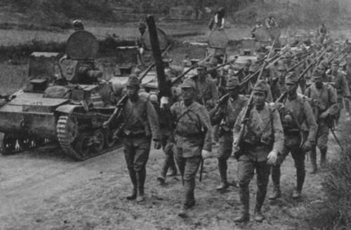 Lính Nhật tiến vào Vũ Hán năm 1938.
