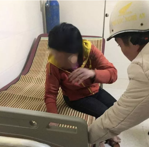 Bà M. bị thương được người dân đưa tới bệnh viện cấp cứu