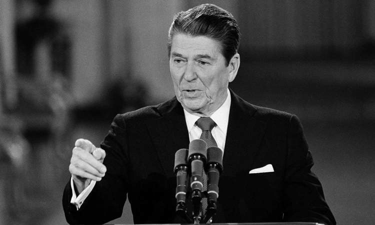 Tổng thống Mỹ Ronald Reagan phát biểu tại Nhà Trắng năm 1984. Ảnh: AP.