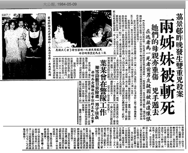 Án mạng xảy ra vào ngày 9 tháng 5 năm 1984 ở làng Lai King, Kwai Chung, Hong Kong. Vào thời điểm đó, một thanh niên vừa xuất ngũ 22 tuổi tên Diệp Thiếu Văn sau khi chia tay với bạn gái Lương Tuyết Thi (22 tuổi) đã sinh ra oán hận, cầm dao đến làng Lai King và giết chết cô cùng em gái Lương Tuyết Nhạn (18 tuổi). Không những thế, Diệp Thiếu Văn còn ra tay với mẹ của 2 nạn nhân, tên Dương Huệ Quần, khiến bà bị thương nặng.