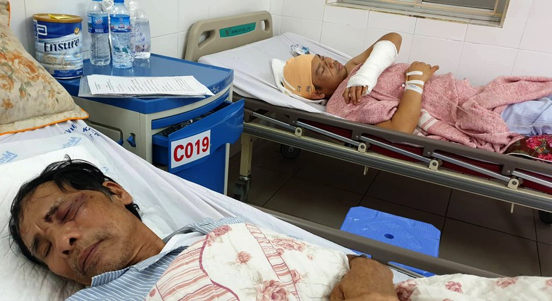 Cha con ông Hùng được người nhà đưa đi cấp cứu trong tình trạng khá nguy kịch. Ông Hùng bị một vết chém ngang mặt dưới mắt trái cùng một vết thương ở đầu. Anh Trường bị chém đứt gân tay, gân chân, một vết chém ngang mặt và hai vết chém dài ở đỉnh đầu.