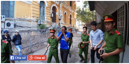 Bị cáo Chime Obiora Walter liên tục che mặt sau khi ra khỏi phòng xử án