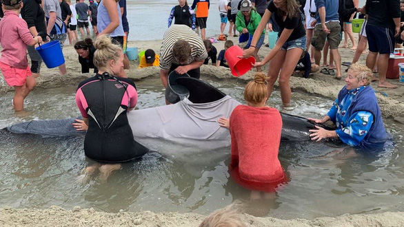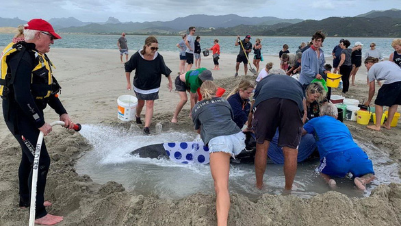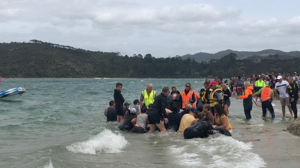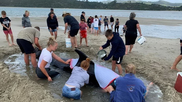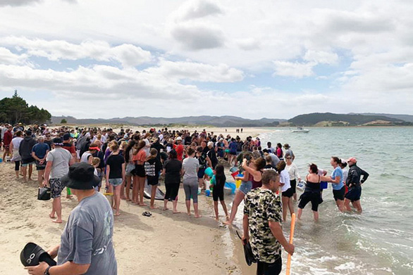 Ngày 4-1, hơn 1.000 người gồm các chuyên gia, lực lượng cứu hộ chuyên nghiệp và tình nguyện viên đã tập trung tại bãi biển Matarangi Spit ở New Zealand để tìm cách giải cứu bầy cá voi bị mắc cạn.