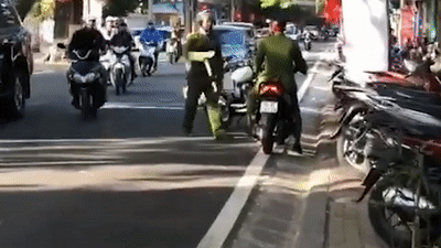 Chiến sĩ công an đi ngược chiều bị cảnh sát trật tự dừng xe.
