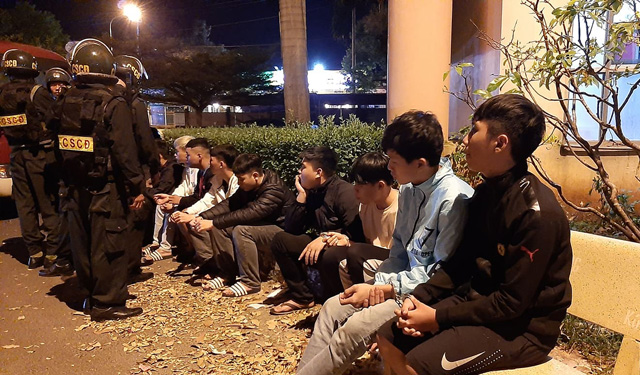 Sau khi bị vây ráp, các đối tượng vứt bỏ hung khí bỏ chạy. Tuy nhiên, lực lượng cảnh sát đã kịp thời khống chế 29 đối tượng đưa về trụ sở. Tại hiện trường, lực lượng công an thu giữ nhiều hung khí như gậy bóng chày, dao Thái Lan, côn nhị khúc, mã tấu… cùng gần 30 chiếc xe máy độ chế do các đối tượng bỏ lại.
