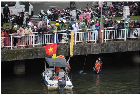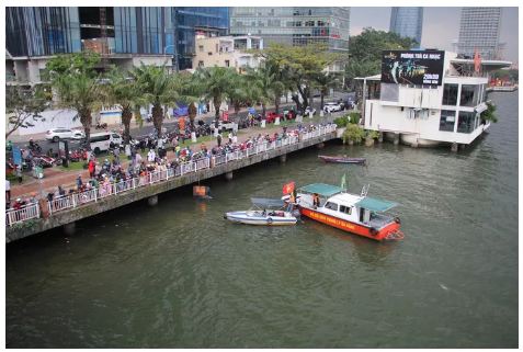Sự việc diễn ra quá nhanh khiến người đi đường không kịp trở tay. Thời điểm xảy ra vụ việc, khu vực lòng sông có một số thuyền cá của ngư dân. Nghe người đi đường truy hô, các thuyền này lập tức đến cứu nạn nhân nhưng bất thành.