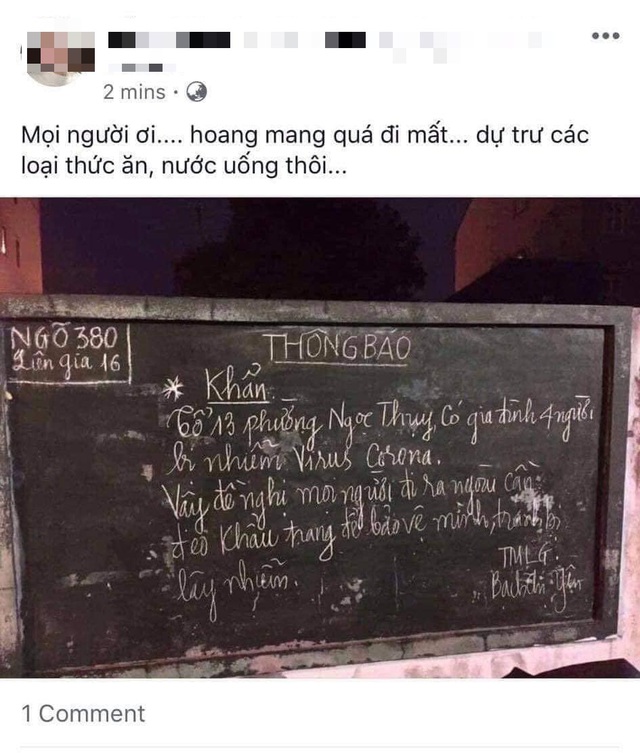 Trên mạng xã hội chiều 5/2 nhiều người chia sẻ dòng trạng thái hoang mang về hình ảnh thông báo Hà Nội ghi nhận 4 ca nhiễm virus corona, kêu gọi mọi người dự trữ thức ăn, nước uống.