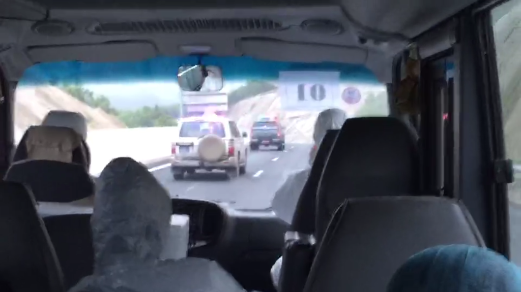 Sau đó, chính xe buýt chở người Việt cũng bị giữ lại tạm thời. Vì số người trên xe đông, nên dù đoàn đã có giấy thông hành, trạm kiểm soát vẫn chờ Sở Ngoại vụ địa phương tới để dẫn xe ra sân bay, mất 2 tiếng.