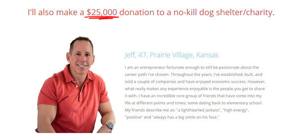 Nói thêm thì Jeff là một người rất yêu chó, anh chàng hứa rằng nếu tìm được ý chung nhân, anh sẽ đóng góp thêm $25000 vào tổ chức từ thiện bảo vệ các loài chó.