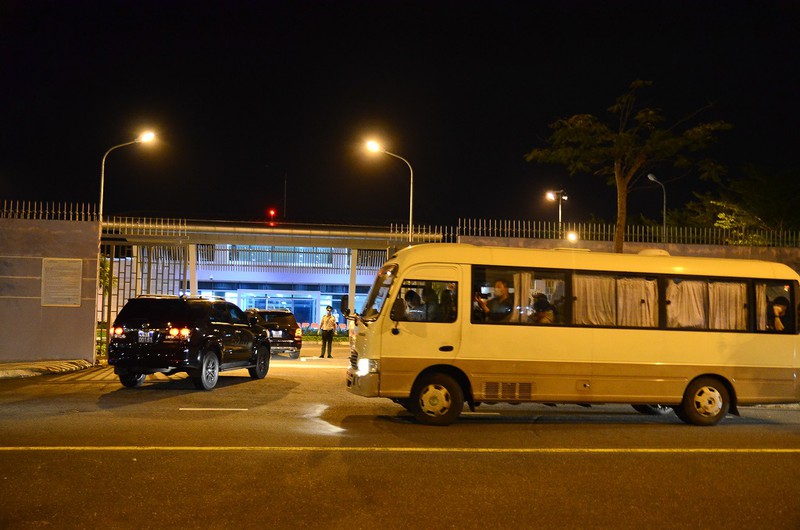 Khoảng hơn 22 giờ, xe chở nhóm du khách Hàn Quốc có nguyện vọng về nước di chuyển vào khu vực Nhà khách Cảng Hàng không quốc tế Đà Nẵng. Ảnh: XS