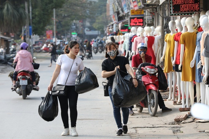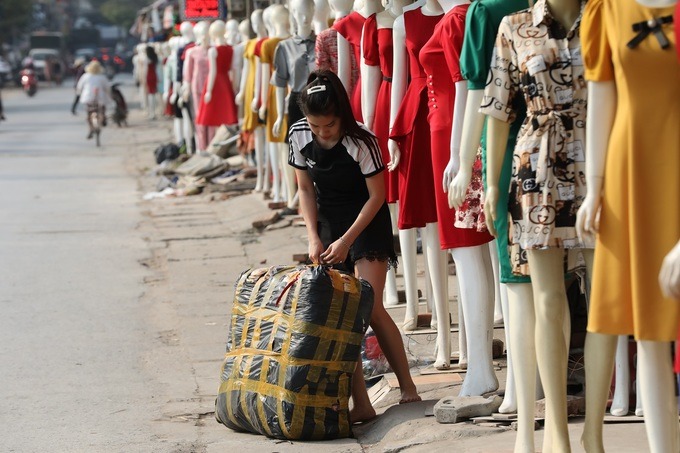 Thời gian này năm ngoái, con đường dẫn vào chợ vải, quần áo Ninh Hiệp (huyện Gia Lâm) luôn chật kín người. Năm nay do ảnh hưởng của dịch Covid-19, lượng khách tới mua sắm giảm 3/4.