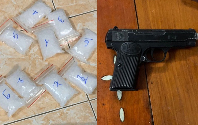 Ma túy và súng thu giữ tại nơi ở của Vũ "Đệ". Ảnh: Công an cung cấp.
