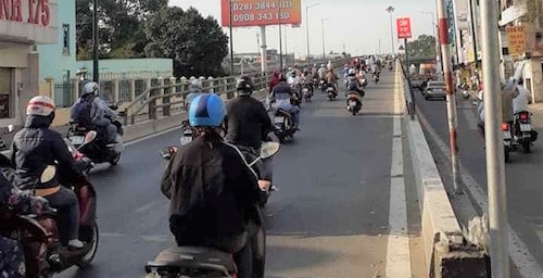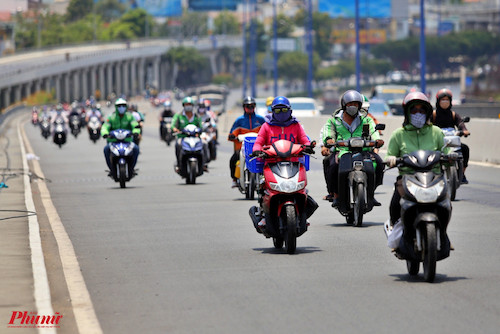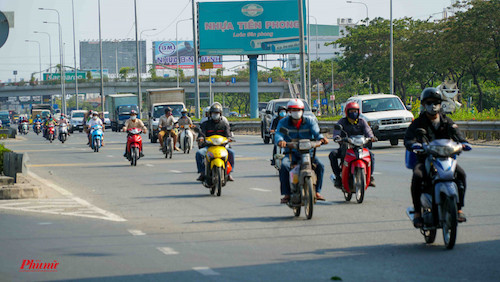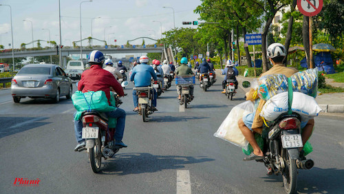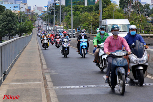 12g30 trưa 3/4, lượng xe trên cầu Sài Gòn (nối quận Bình Thạnh với quận 2, TPHCM) vẫn rất đông người đi lại. Phần lớn người dân cho biết họ về các tỉnh Bình Dương, Bình Phước, Đồng Nai, Bà Rịa Vũng Tàu, Bình Thuận.
