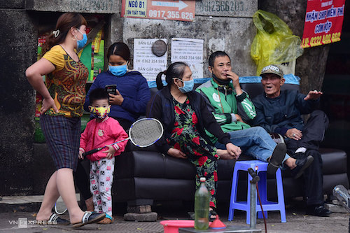 Người không đeo khẩu trang, ngồi gần nhau trên phố Tôn Thất Tùng.