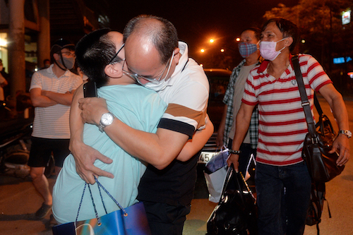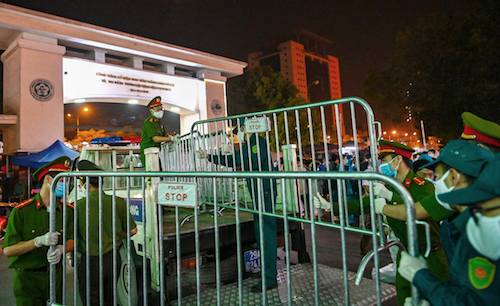 Đúng 0h ngày 12/4, hàng rào phong tỏa bệnh viện Bạch Mai được dỡ bỏ trong tiếng reo hò của hàng trăm nhân viên y tế.