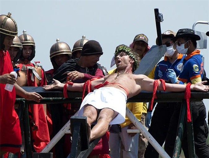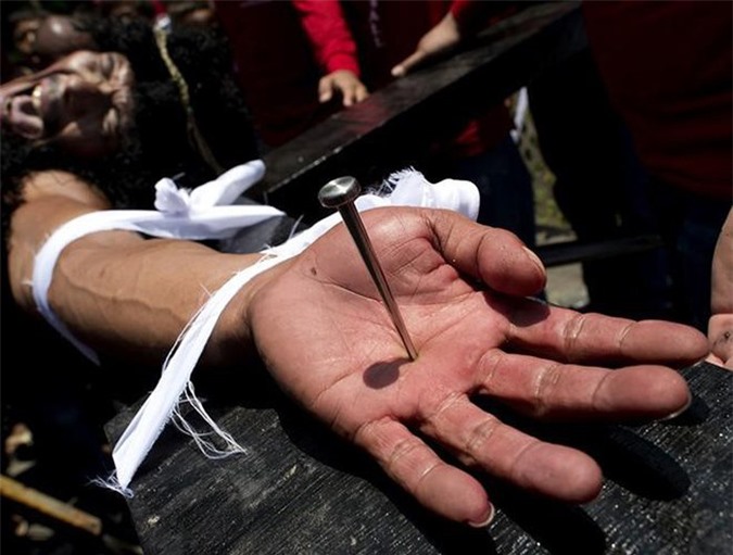 Đóng đinh vào người là một trong những nghi thức quan trọng tại Lễ Phục sinh của người Philippines. Nhiều người trên thế giới đã đổ xô đến đây để được chứng kiến tận mắt cảnh chúa Giêsu bị hành hình được người dân trong làng Cutud, Philippnines tái hiện lại