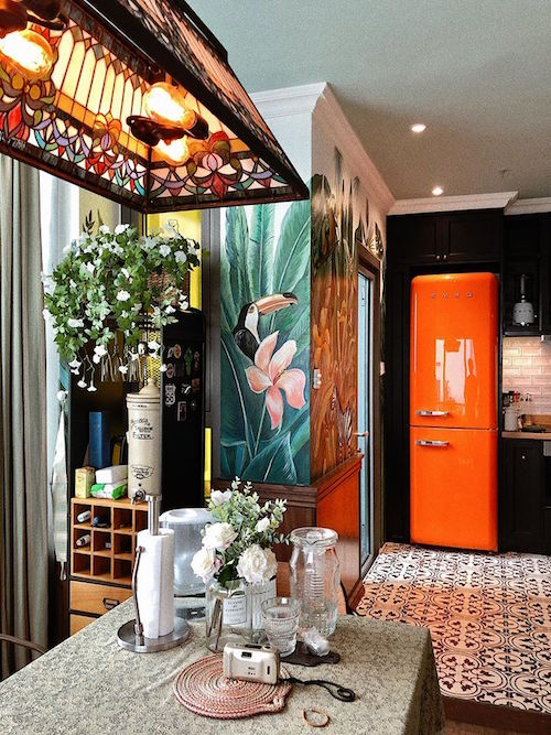 Trong đó, món đồ khiến vợ chồng Tiên "đau đầu" nhất chắc là chiếc tủ lạnh. Vì muốn đúng mẫu tủ lạnh màu cam của hãng Smeg, gia chủ phải đặt từ nước ngoài, mà đúng đợt hết hàng nên phải đợi. "Từ lúc đặt mua đến lúc nhận được chiếc tủ lạnh là hơn hai tháng", Tiên tiết lộ.