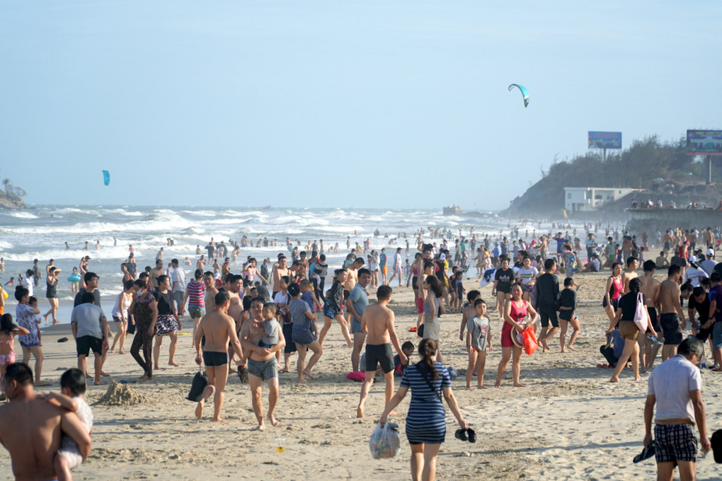 Biển Bãi Sau có hàng nghìn người tắm lúc 16h ngày 25/4. Ảnh: Trường Hà.