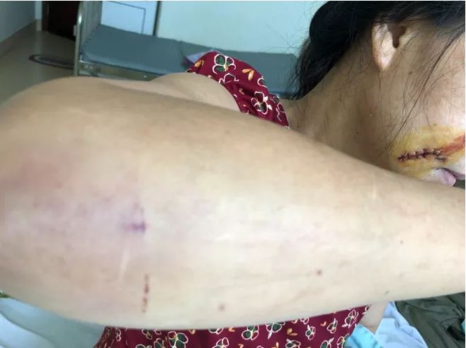 Chị Thu với nhiều thương tích được điều trị tại bệnh viện Bà Rịa.