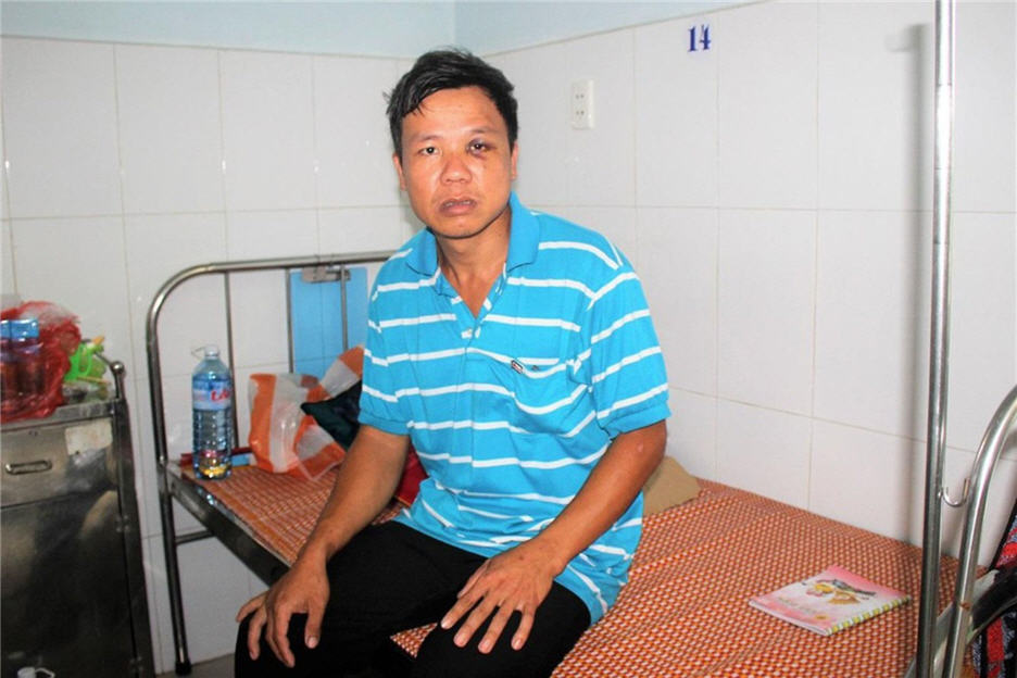 Anh Nguyễn Công Cường bị đánh phải nhập viện. (Hình: Đại Đoàn Kết)