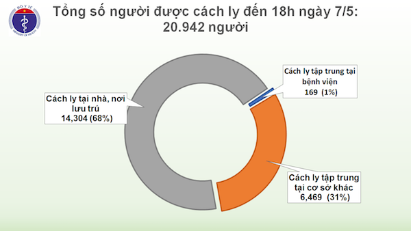 Số người cách ly: Tổng số người tiếp xúc gần và nhập cảnh từ vùng dịch đang được theo dõi sức khỏe (cách ly): 20.942, trong đó: