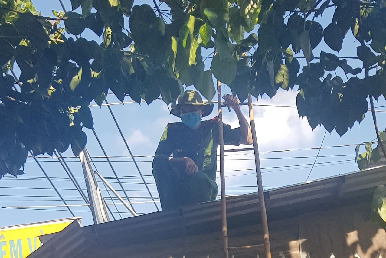 Cảnh sát đã leo lên mái nhà để thực hiện việc khám nghiệm.