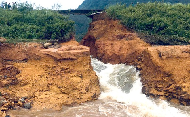 Đập nước ở Phú Thọ bị vỡ khiến nước tràn xuống hạ du. Ảnh: Báo Phú Thọ.