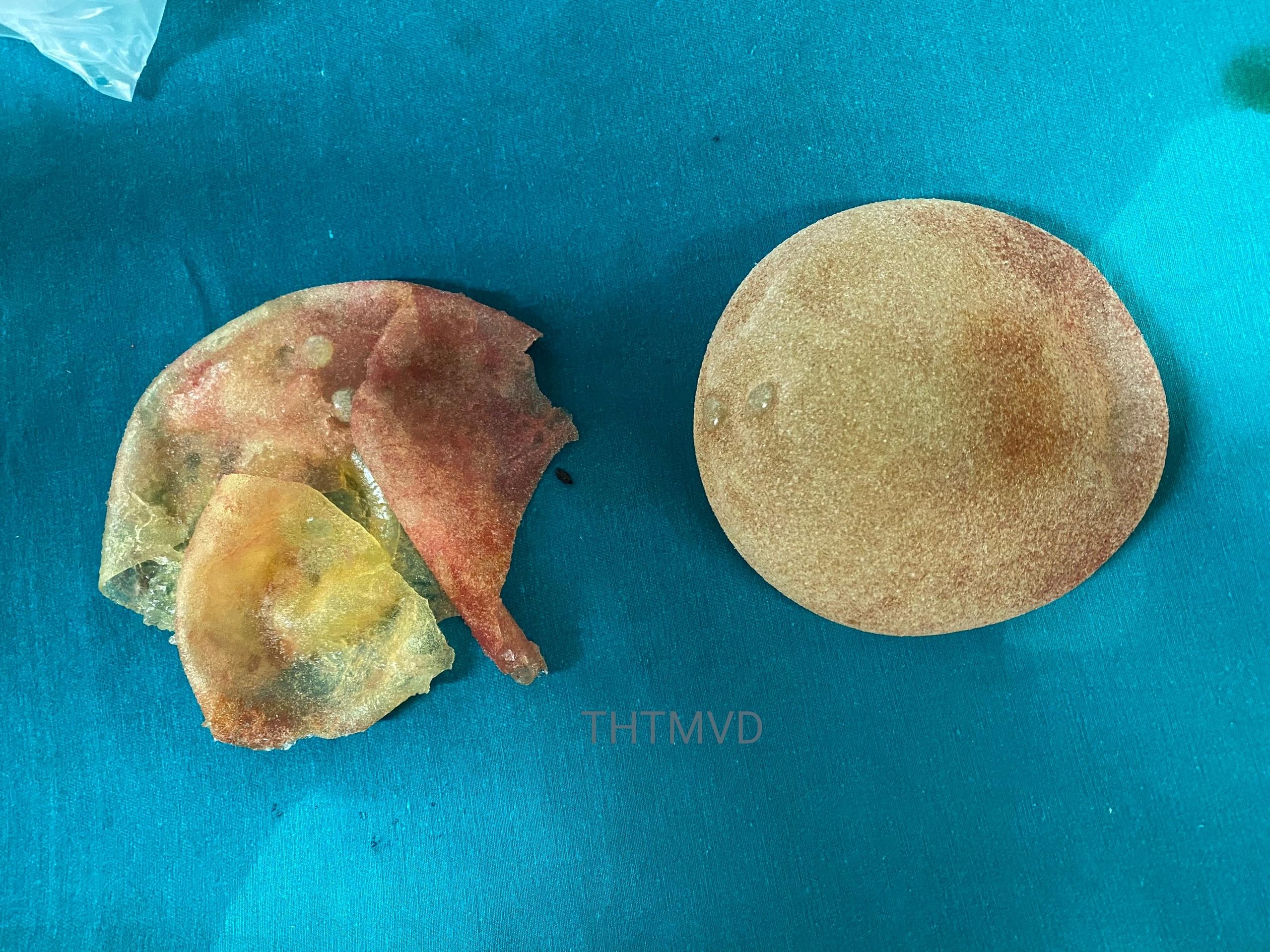 Túi ngực của bệnh nhân được lấy ra sau ca phẫu thuật