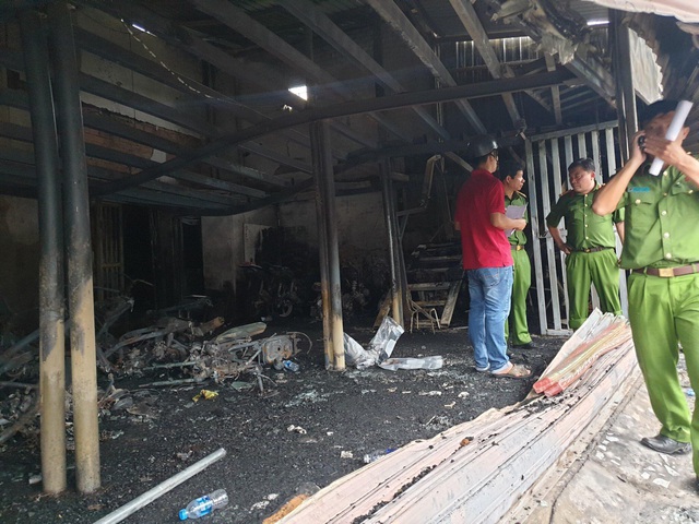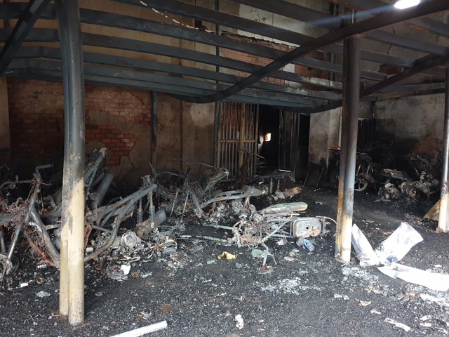 Nhiều xe máy trong tiệm cầm đồ bị thiêu rụi, trơ khung.
