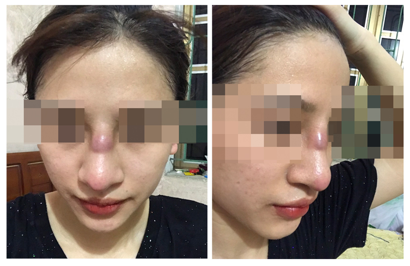 Bệnh nữ sinh năm 2001 tại Quảng Ninh bị áp xe (nhiễm trùng) mũi sau nâng mũi.