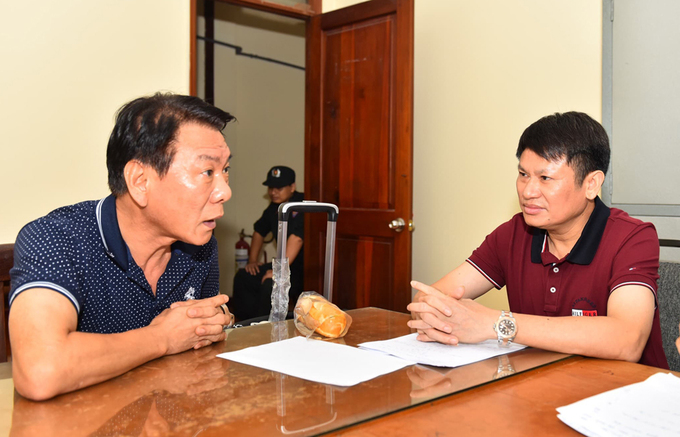 Nghi can cầm đầu Kim SooSik - cựu cảnh sát Hàn Quốc (trái), bị đại tá Nguyễn Văn Viện (Cục trưởng Cảnh sát phòng chống tội phạm ma túy) lấy lời khai . Ảnh: Bộ Công an.
