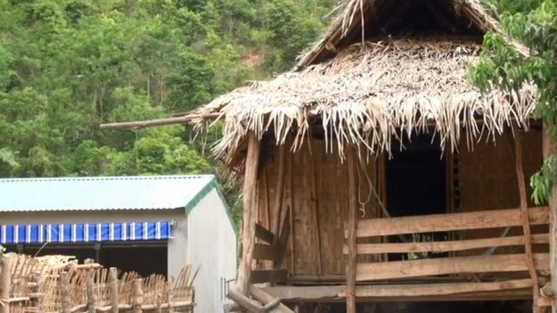 Nhiều nhà của người dân tộc Ơ Đu vẫn là nhà tranh vách lá trong khi chuồng bò được xây kiên cố