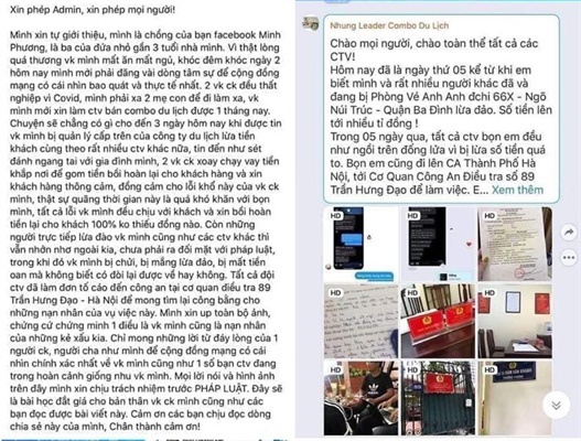 Tuy nhiên, đến gần ngày khởi hành, khách hàng không nhận được mã vé và mã phòng. Khoảng từ ngày 10/7, chủ phòng vé đã biến mất cùng số tiền đặt cọc của khách do các cộng tác viên chuyển về.