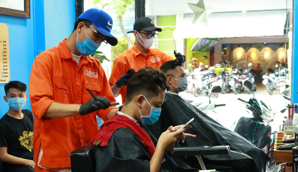 Đa số khách hàng đến cắt tóc ở tiệm là các bạn trẻ, tâm lý chung vì lo lắng một đợt cách ly xã hội tiếp theo có thể diễn ra và kéo dài nên hầu hết đều yêu cầu thợ cắt tóc cắt ngắn hơn so với những lần cắt trước để tóc lâu dài hơn.