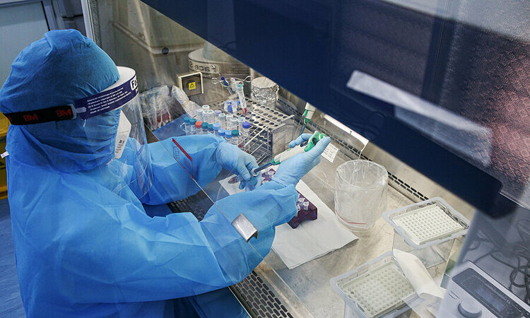 Nhân viên y tế trong phòng xét nghiệm. Ản: Nguyễn Hải
