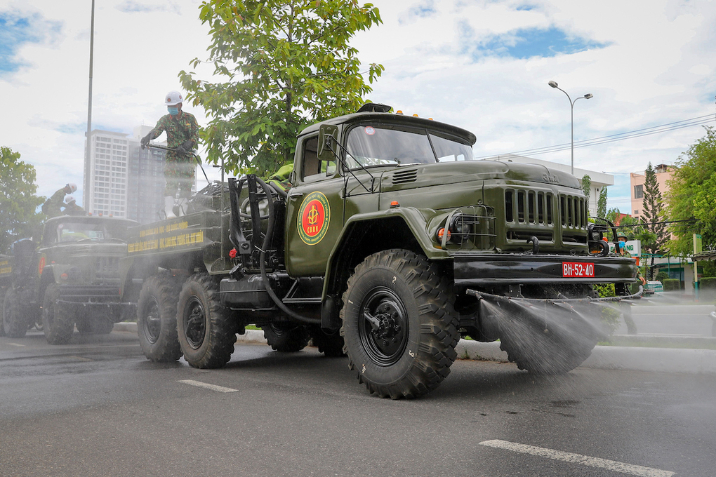 Phun khử khuẩn đường phố Đà Nẵng. Ảnh: Nguyễn Đông.