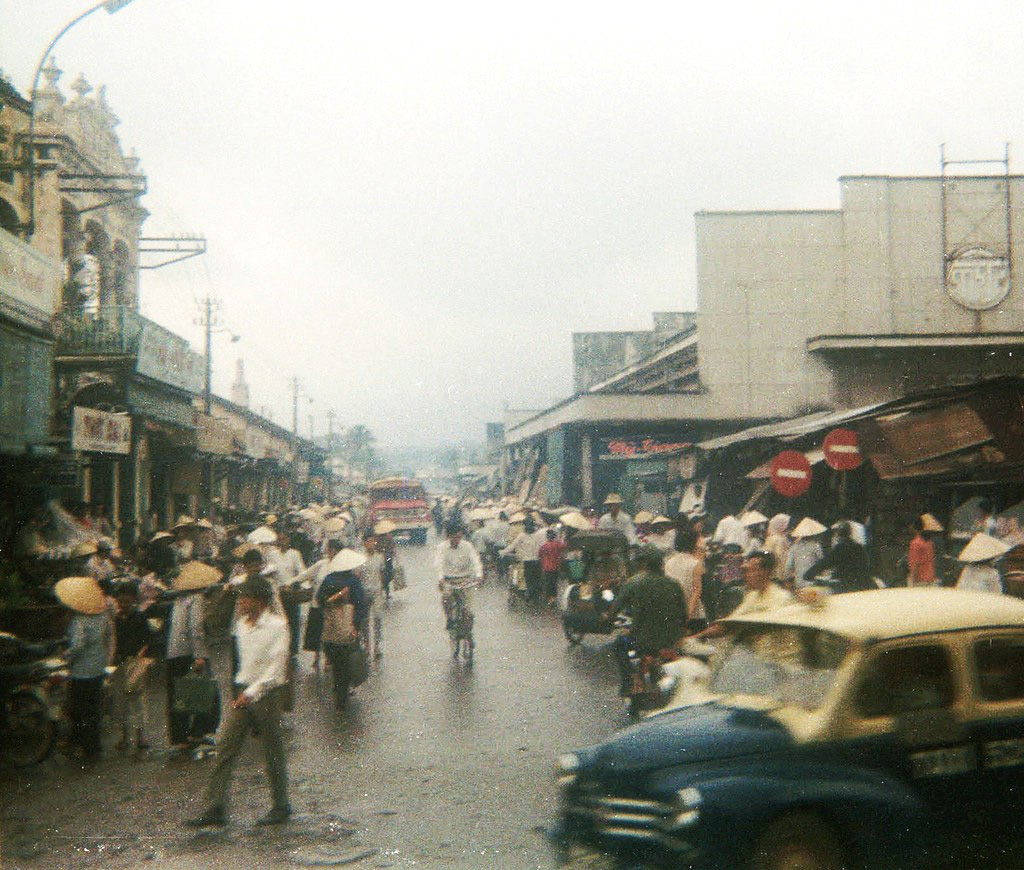Khung cảnh nhộn nhịp bên ngoài chợ Bà Chiểu năm 1965. Ảnh: Gary Mathews.