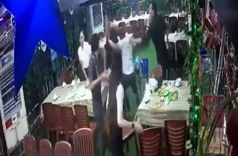 Thấy bạn mình bị đánh, nhóm khách cùng bàn lao vào đánh Long.