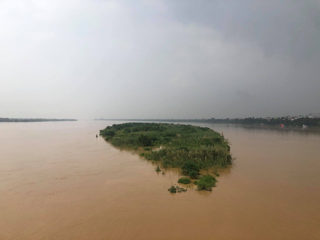 Trưa nay 20/8, nước sông Hồng dâng cao. Hình ảnh bãi giữa sông Hồng (Long Biên, Hà Nội) nước dâng mênh mông.