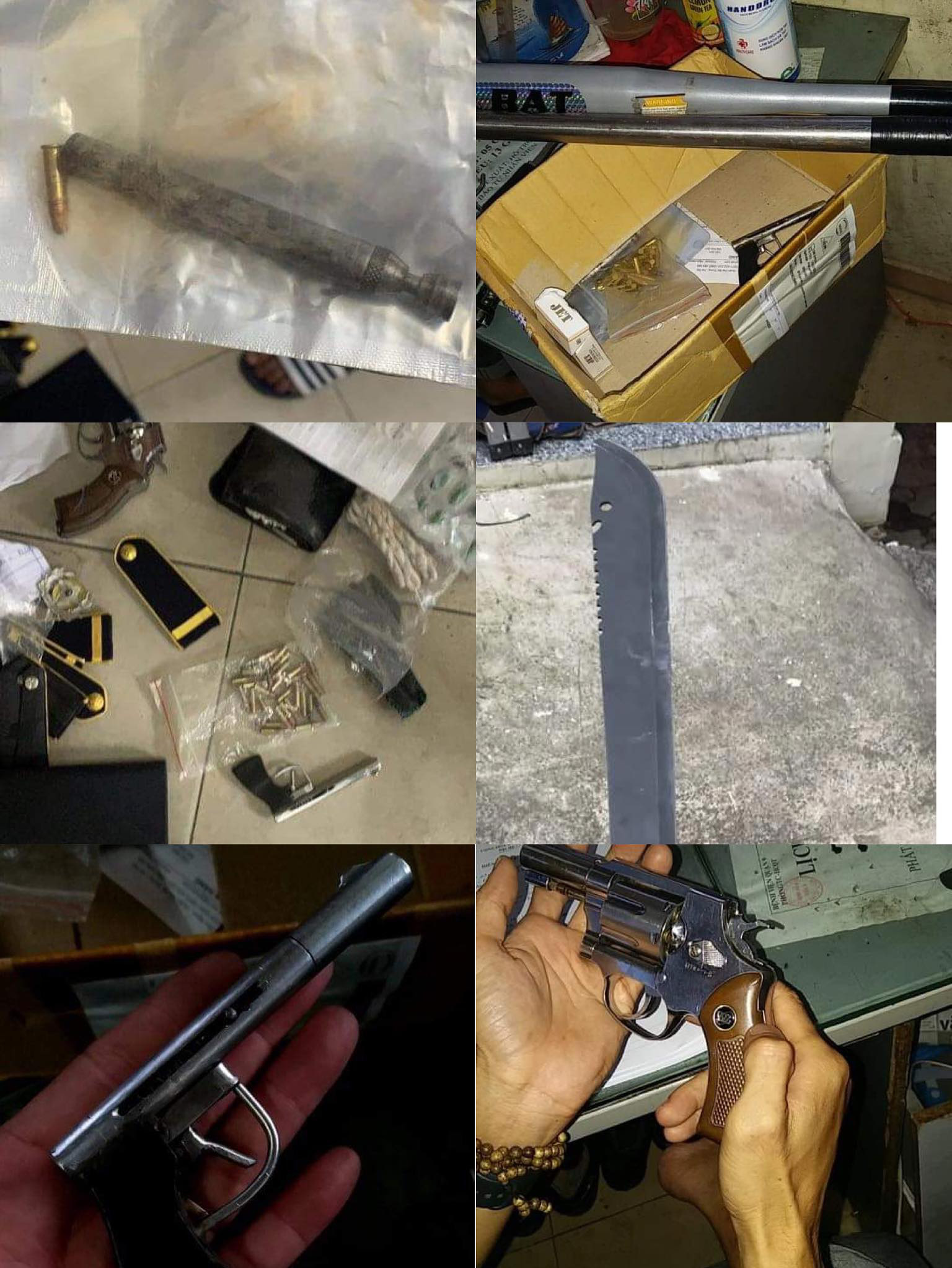 Qua làm việc, thanh niên khai tên là Việt đang làm bảo vệ, giữ xe của Bệnh viện quận 9. Bằng nghiệp vụ, công an tiến hành khám xét nơi cư trú của Việt ở Bệnh viện quận 9, thu giữ nhiều tang vật như súng, đạn, kiếm…