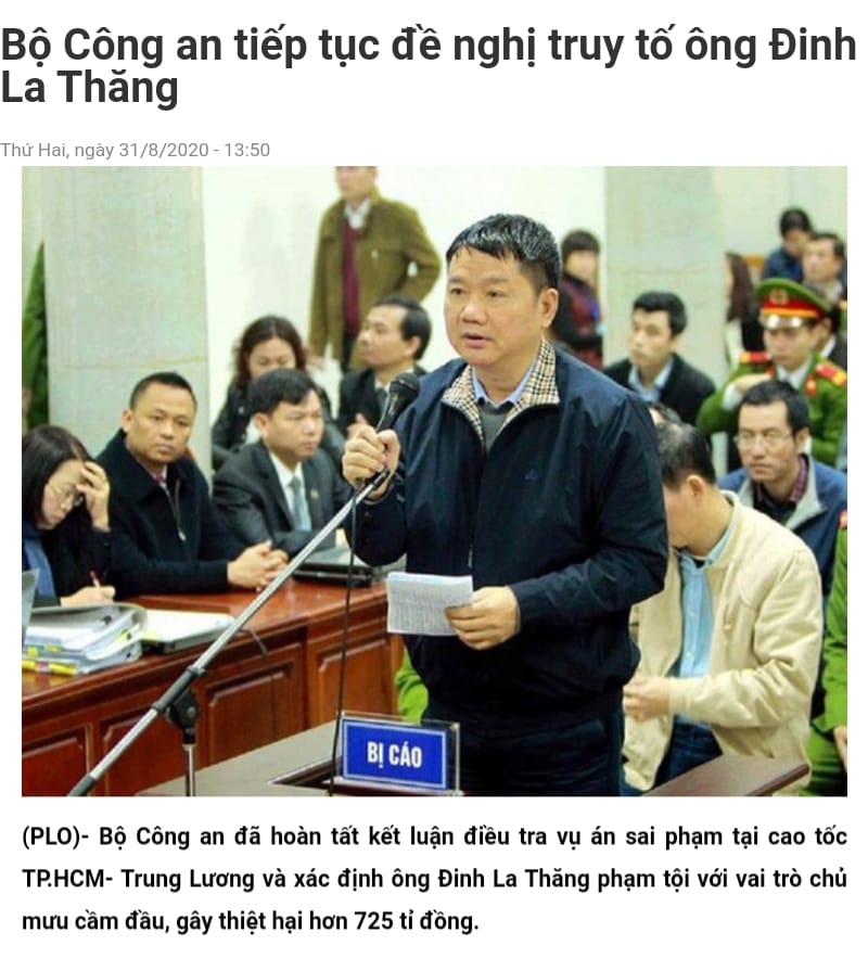 Bởi vì như báo nhà sản loan tin thì lần này Đinh La Thăng bị lôi ra pháp đình và trước đây một thời gian ngắn thì thứ trưởng của Đinh La Thăng là Nguyễn Hồng Trường cũng bị bắt do sai phạm tới việc bán dự án cao cấp Sài Gòn - Trung Lương cho Út trọc và cháu gái của Út trọc là Vũ Thị Hoan với sai phạm hàng ngàn tỷ đồng mà Đinh La Thăng là kẻ trực tiếp ra lịnh cho thứ trưởng Nguyễn Hồng Trường bán dự án này căn cứ trên văn bản phê duyệt cho phép Bộ Giao thông vận tải bán dự án của Phó thủ tướng Hoàng Trung Hải.