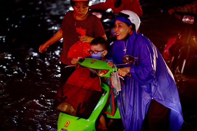 Các phương tiện chết máy, hàng trăm người dắt bộ lội nước bì bõm. Nhiều tiệm sửa xe trên tuyến đường Tô Ngọc Vân không tiếp nhận thêm khách vì quá tải. "Từ chiều đến 8h tối vẫn chưa hết khách, không kịp ăn cơm nhưng phải giúp bà con để họ có xe về sớm", anh Nguyễn Huy Toàn, chủ tiệm sửa xe cho biết.