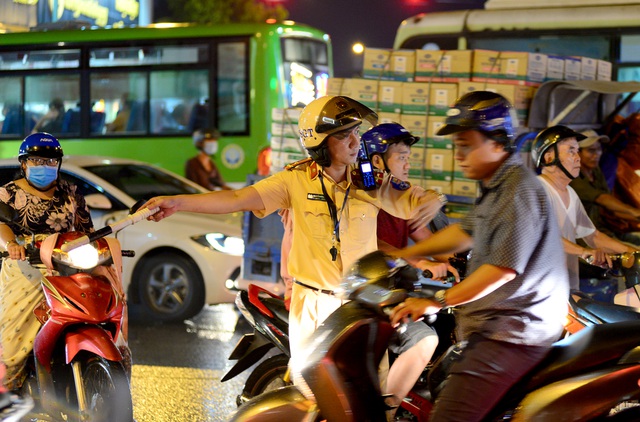 Lực lượng CSGT làm việc liên tục nhưng lượng phương tiện ngày càng đông.