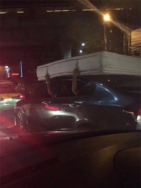Không rõ do người quá to hay kích thước xe quá nhỏ!
