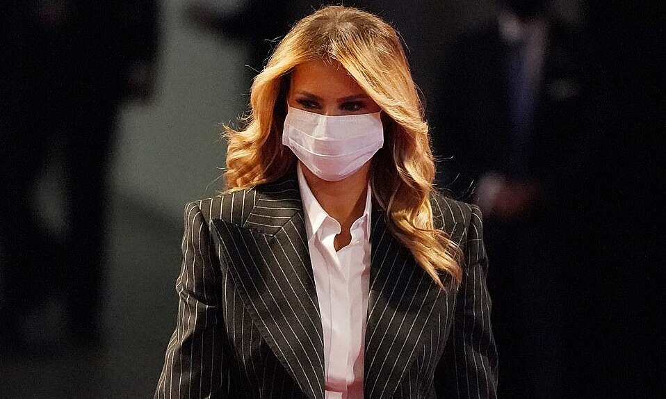 Trong khi phu nhân Biden là bà Jill Biden mặc chiếc đầm lụa màu xanh lá đậm bà từng dùng tại một sự kiện năm 2017, đến dự buổi tranh luận tổng thống của chồng thì đệ nhất phu nhân Melania lại diện bộ đồ kẻ sọc trị giá hơn 3.340 USD thương hiệu nổi tiếng.