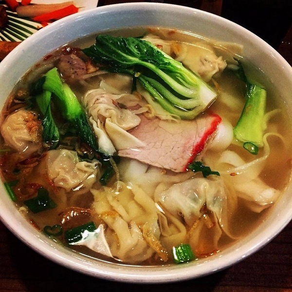 Còn có mì hoành thánh, sủi cảo chấm tương ớt hoặc nước tương. Bỏ vào miệng cảm được cái mềm mại của bột, cái dai dai béo béo đậm đà của thịt, cái ngọt lừ của nước lèo, tất cả hoà thành một hương vị đặc biệt khó quên .
