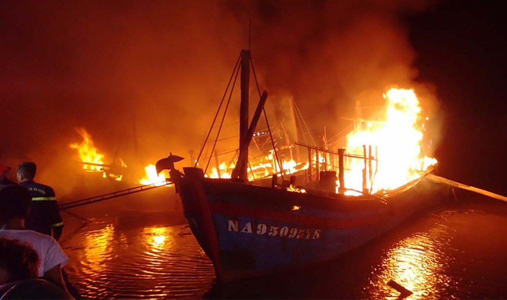Nhiều người dân địa phương hô hoán, tìm cách dập song bất thành. Lửa mỗi lúc một lớn, lan sang 3 tàu cá khác ở bên cạnh. Các tàu nằm sát nhau, có thể bước sang nhau.